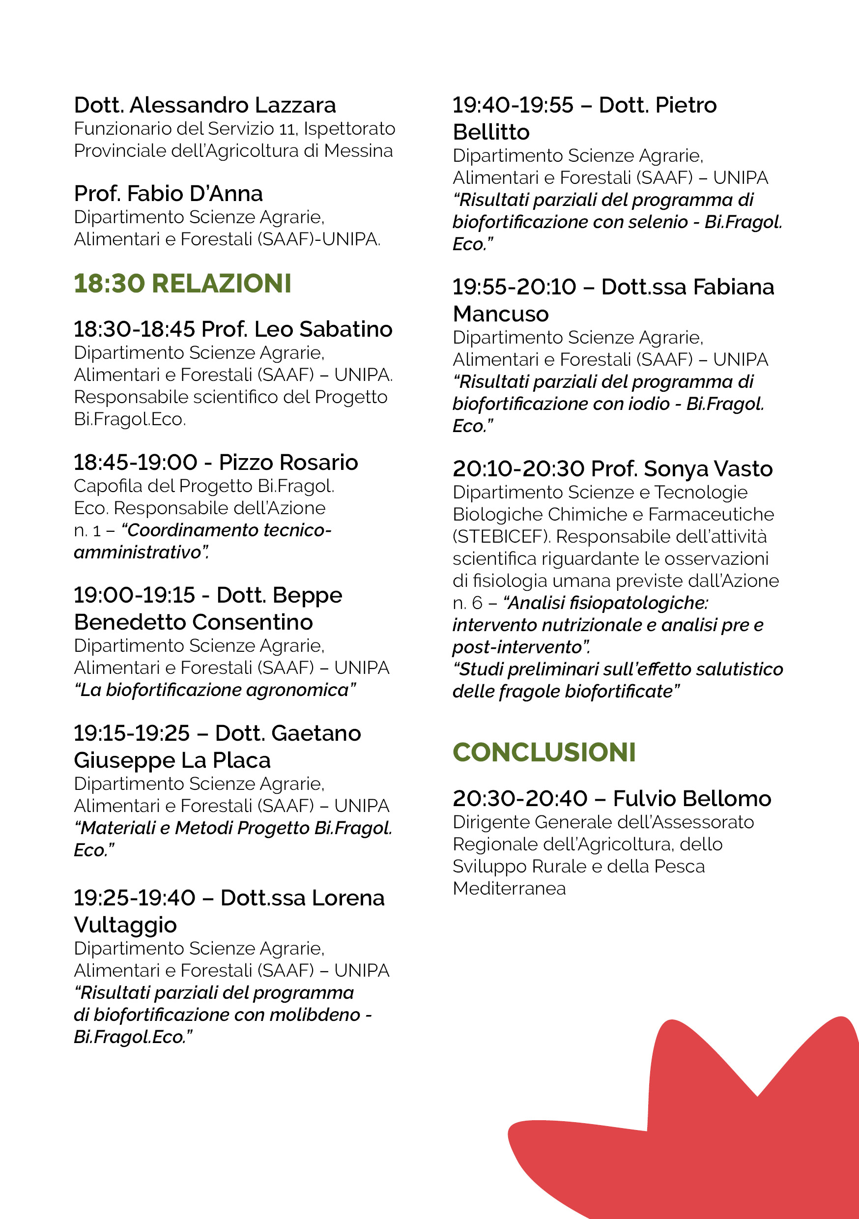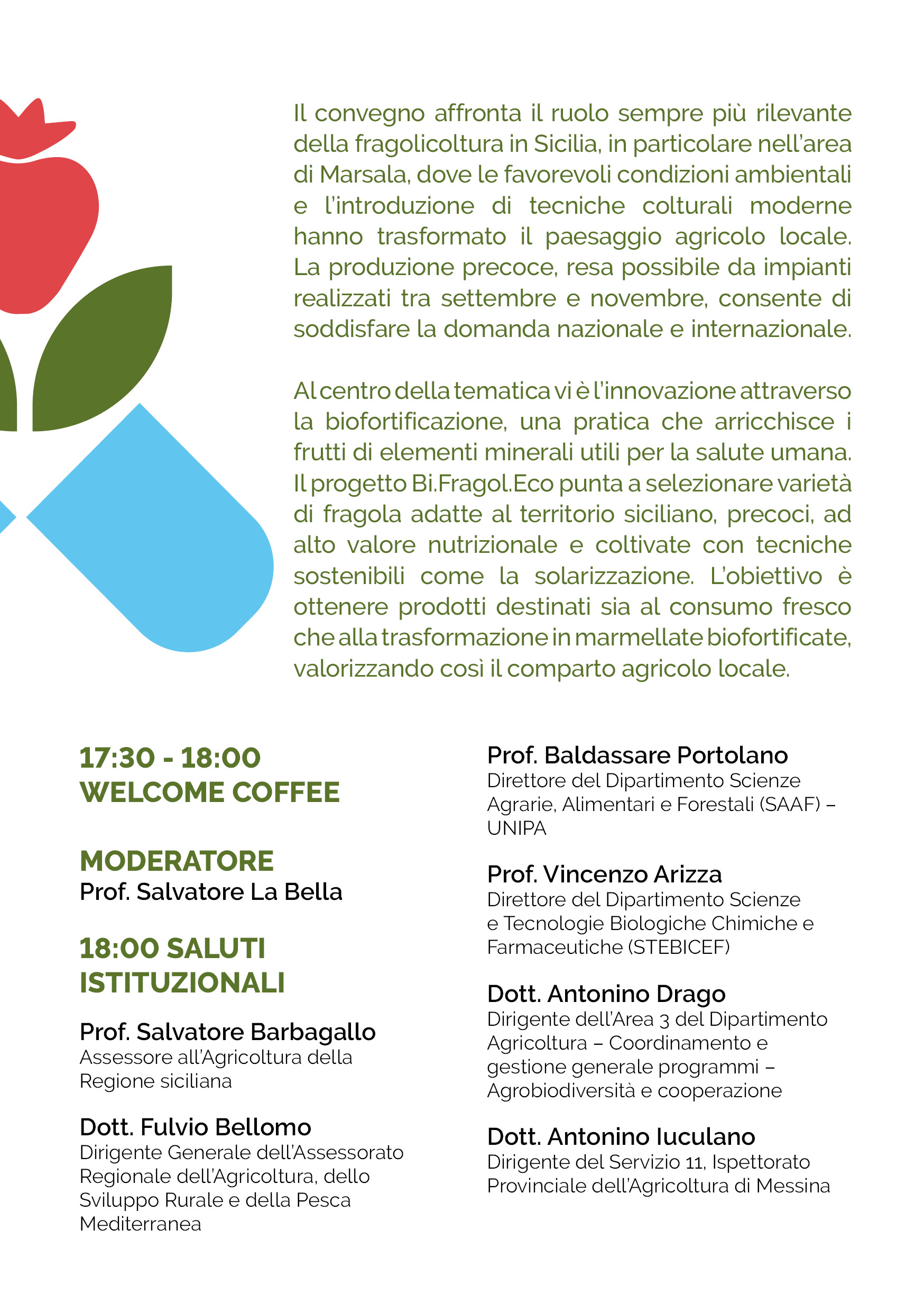 Il progetto si pone la finalità di individuare genotipi di fragola idonei ad una fragolicoltura siciliana in grado di distinguersi per l’elevata precocità, che garantisca il successo delle pratiche di biofortificazione.